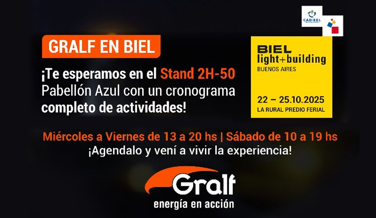 Del 22 al 25 de octubre, Gralf participará de BIEL Light + Building Buenos Aires 2025, la exposición más importante del sector eléctrico, electrónico y luminotécnico del país.